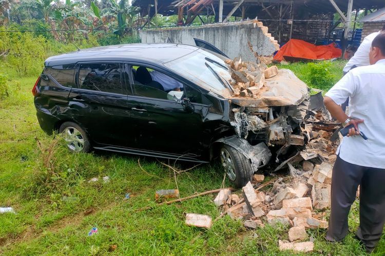 Petaka dialami Komisioner KPU Sumenep, Mitsubishi Xpander yang ditumpangi terkoyak, tabrak tembok pagar gudang rongsok