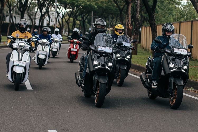 Yamaha Ngabuburide Bareng Awak Media, Pakai New XMAX dan Grand Filano Bagi-bagi Takjil di Jalan