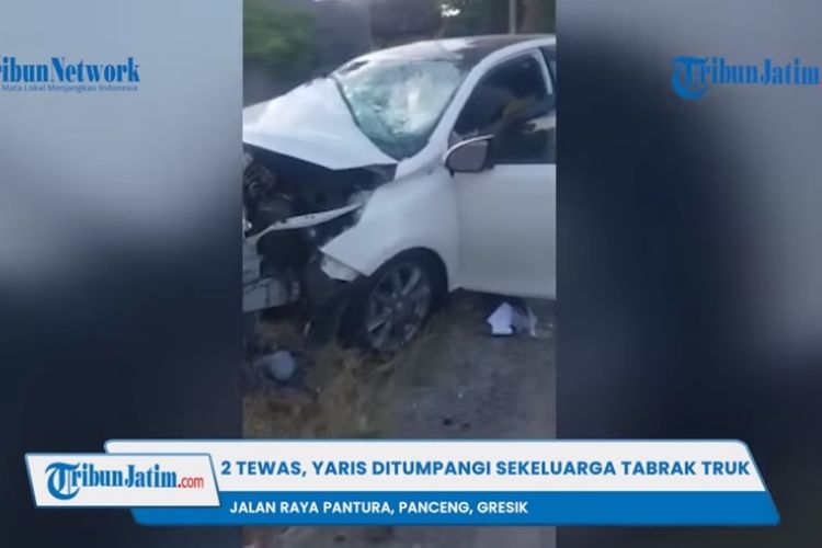 Toyota Yaris isi satu keluarga beradu lawan truk di Gresik saat mau pulang ke Lamongan. Akibatnya ayah dan anak meregang nyawa