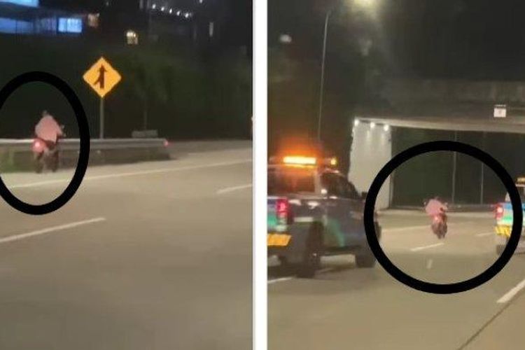 Pengendara motor jaket pink terlibat kejar-kejaran dengan tiga mobil pjr di tol Depok-Antasari. Nekat masuk tol dan enggak pakai helm