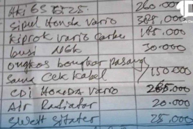 Viral curhatan pemilik Honda Vario 110 jadi sasaran bengkel nakal, servis motor habis Rp 1,3 juta tanpa persetujuan pemilik. Motor masih rewel