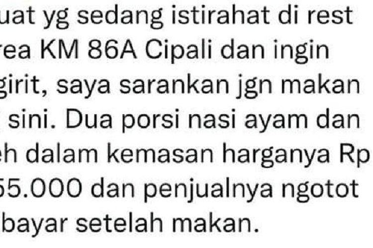 Pedagang di Rest Area KM 86 Tol Cipali Mirip Preman, Jual Nasi Ayam Rp 155 Ribu