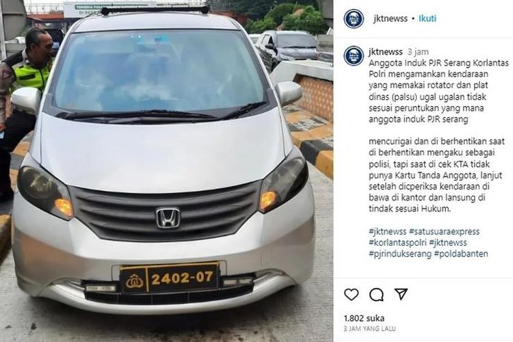Honda Freed berpelat dinas Polri 2402-07 palsu petentang-petenteng pakai strobo dan rotator di tol Tangerang-Merak, sopir masih bau kencur