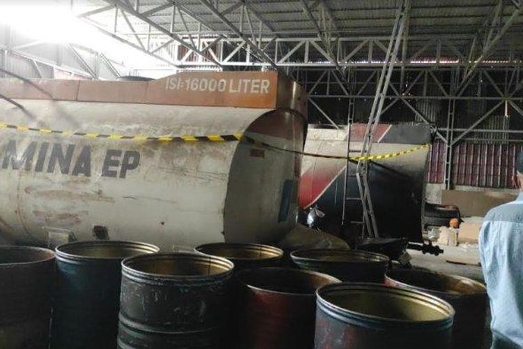 Pertamina sia bantu polisi selidiki gudang solar diduga milik AKBP Achiruddin setelah ditemukan tangki berlogo Pertamina di dalam gudang