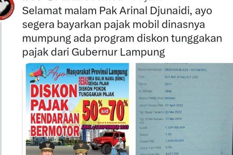 Lampung Oh Lampung, Usai Disorot Soal Jalan, Mercy Dinas Gubernur dan Wagub Lampung Ternyata Nunggak Pajak