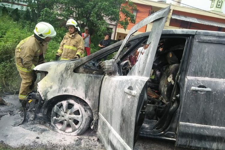 Nissan Serena Highway berubah jadi bangkai usai disambar api luar dalam. Diduga api berasal dari kabin karena terpapar radiasi matahari