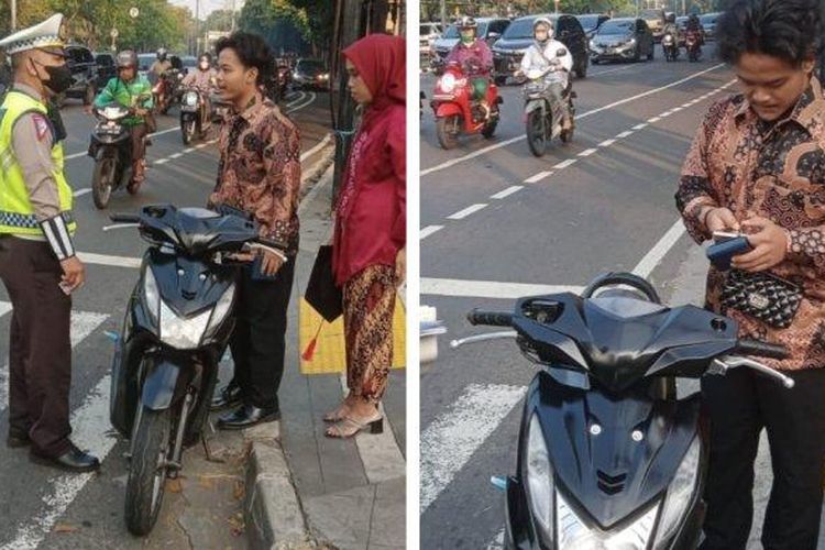 Kelakuan pemuda-pemudi yang buru-buru wisuda ini seperti nantang Polisi, bawa Honda BeAT gak pakai helm, spion, pelat nomor dan STNK