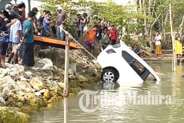 Datsu Go sewaan yang dibawa sekelompok pemuda ketiban apes, mau muter-muter malah berakhir bablas ke pesisir selat madura