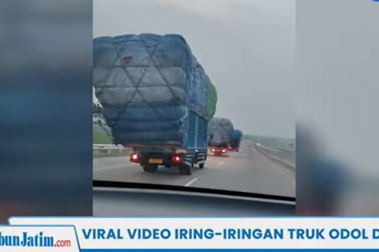 truk ODOL (Over Dimension Over Load) konvoi di jalan tol cikampek. konvoi truk ODOL ini bukanlah kali pertama terjadi