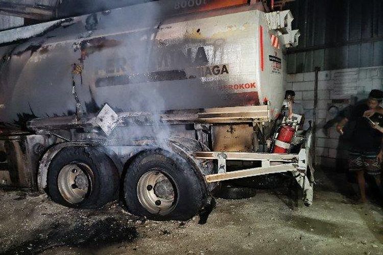 Truk tangki Pertamina terbakar hebat di cucian mobil wilayah Sumberejo, Kemiling, Bandar Lampung, berubah menghitam