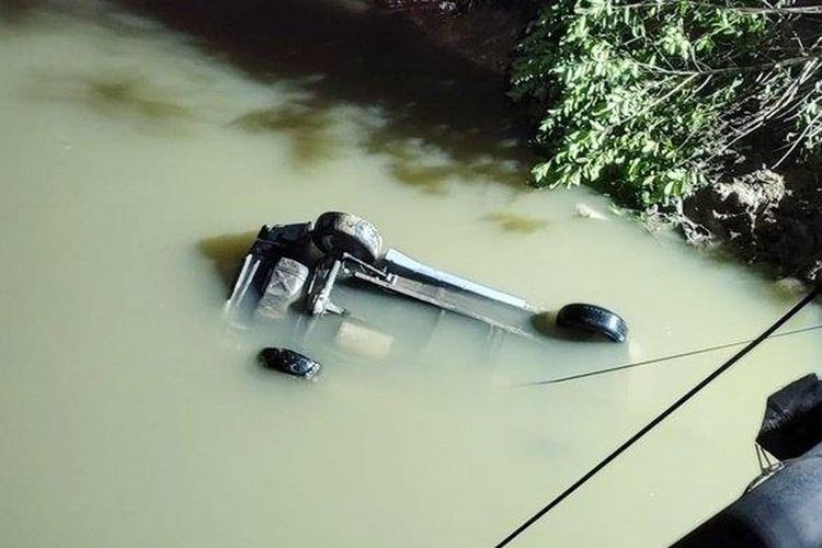 Suzuki Escudo isi 5 orang loncat dari jembatan ke sungai. 4 orang berhasil selamat sedangkan 1 bayi ditemukan meninggal dunia