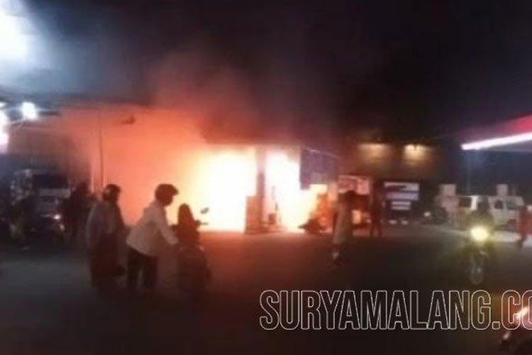 Ulah Motor Digoyang Saat Isi BBM, SPBU Tlogomas Hangus Dibakar Api