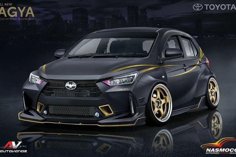Digimods atau modifikasi digital Toyota All New Agya (Agya 2023), dibikin semok, pakai body kit custom, pelek SSR SP1 Professor