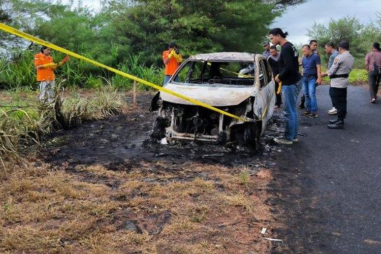 Ditemukan bangkai Toyota Avanza kondisi ludes terbakar di pantai Congot, Kulon Progo oleh nelayan, polisi amankan pelat nomor