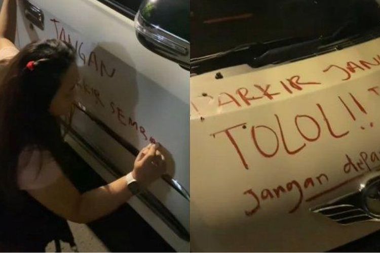 Viral Toyota Agya putih jadi papan tulis dadakan seorang wanita yang jengkel. Ulah pemilik mobil parkir sembarangan