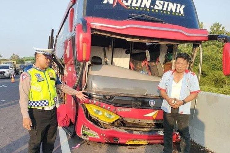 Bus PO Agra Mas kecelakaan di KM 82.600/B tol Cipali tabrak truk dan pembatas jalan saat nyalip, kernet tewas bikin penumpang teriak-teriak