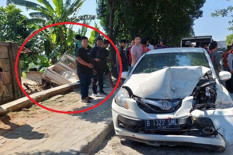 Ruang Mesin Honda Brio Hancur Lebur, Dipacu Kesetanan Tendang Keras Motor dan Pikap Toko Bangunan