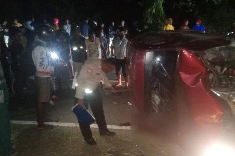Toyota Veloz jungkir balik usai gagal nikung dan menghantam pohon. Pengemudi meninggal dunia dalam kecelakaan tersebut