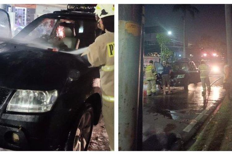 Suzuki Grand Vitara nyaris gosong luar dalam, api keluar dari kap mesin saat sedang digunanakan. Beruntung warga bergerak cepat