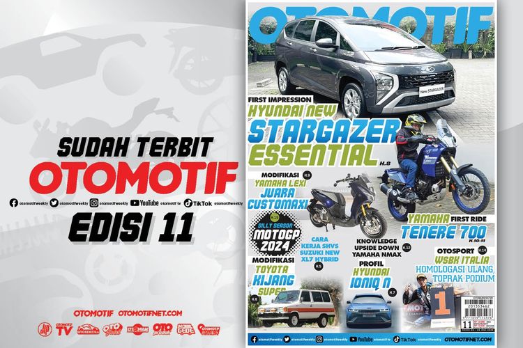 Tabloid OTOMOTIF edisi 11 terbaru telah terbit. Kali ini mengupas Hyundai Stargazer Essential, Yamaha Tenere 700 dan ulasan menarik lainnya.