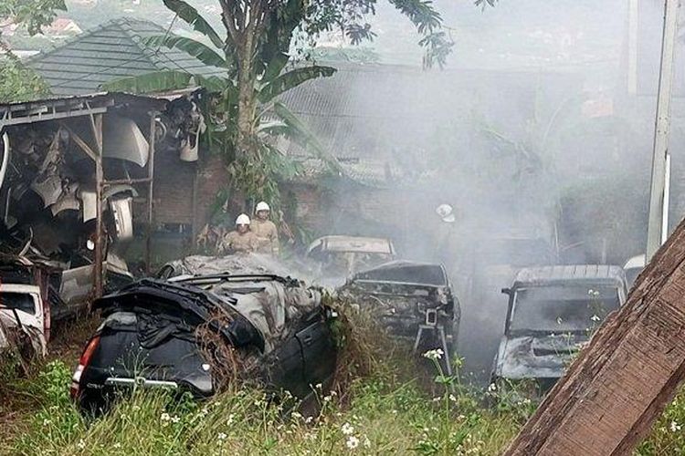 Mobil-mobil tuas yang menunggu antrean direparasi gagal ganteng dan berakhir jadi gosong. Api menyala dari alat las
