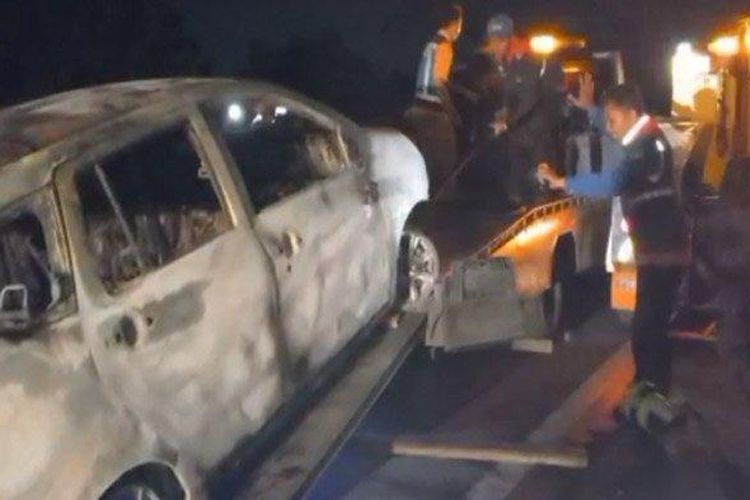 Kronologi Toyota Calya terbakar habis hingga ludes jadi bangkai rongsokan di tol Pasuruan-Probolinggo, berawal roda kanan depan keluar percikan api