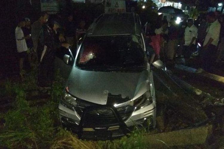 Toyota Avanza dihantam kereta api saat melintas di perlintasan tanpa palang pintu. Begini kondisi kedua korban