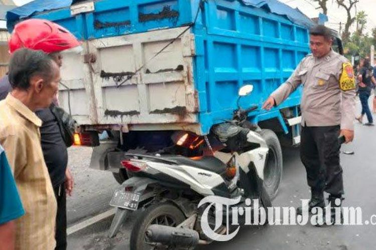 Dua siswi MTs di Lumajang menghembuskan naas terakhir usai terlibat kecelakaan dengan truk parkir. Vario yang dikendarai ringsek