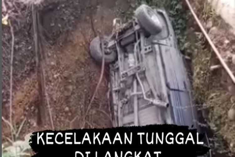 Isuzu Panther kecemplung ke kubangan tanah sedalam 6 meter akibat jalan ambles di Batang Serangan, Langkat, Sumatera Utara
