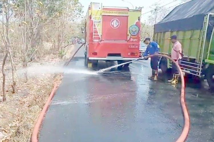 Truk Pengangkut Garam di Pulau Madura Diburu Polisi, Tetesan Air Sulap Aspal Bak Keramik