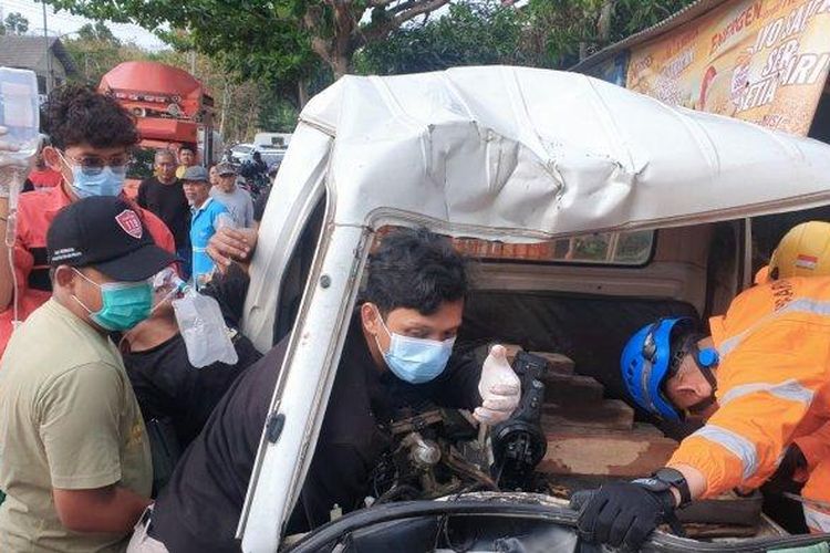 Sopir Mitsubishi Colt T120SS kejepit di dalam kabin usai tabrak tiang listrik di Sentolo, Kulon Progo