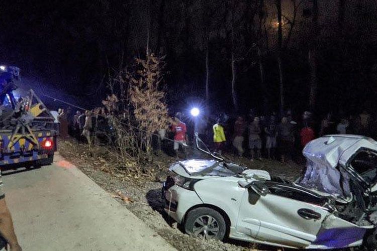 Petakan ban meletus, Toyota Avanza ringsek hingga atap terpenggal hantam pohon jati. Begini kronologinya