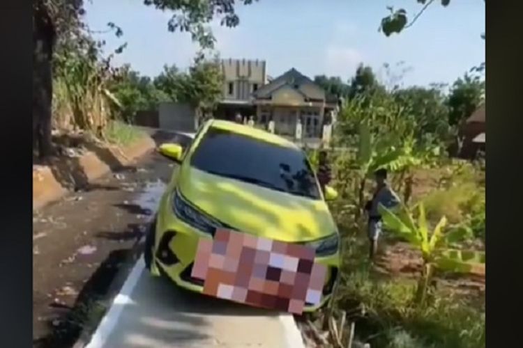 Toyota Yaris nyasar ke jalan cor sempit diduga ngikutin arahan Mbah Google Maps. Begini kronologinya