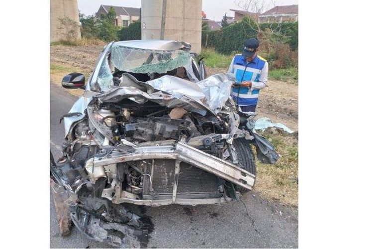 Toyota Yaris ringsek parah usai tusuk truk di Tol Padaleunyi. Mahasiswa di dalam kabin meregang nyawa di TKP