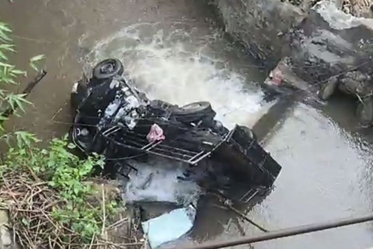 Daihatsu Gran Max hancur di dasar sungai setelah mengantar sayur. Sopir baru sadar habis alami kecelakaan tersebut