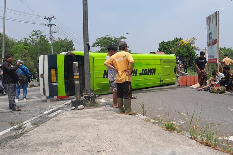 Isuzu Elf berisi 18 santri asal Pondok Al Iman Purworejo terguling di perempatan Salib Putih Salatiga