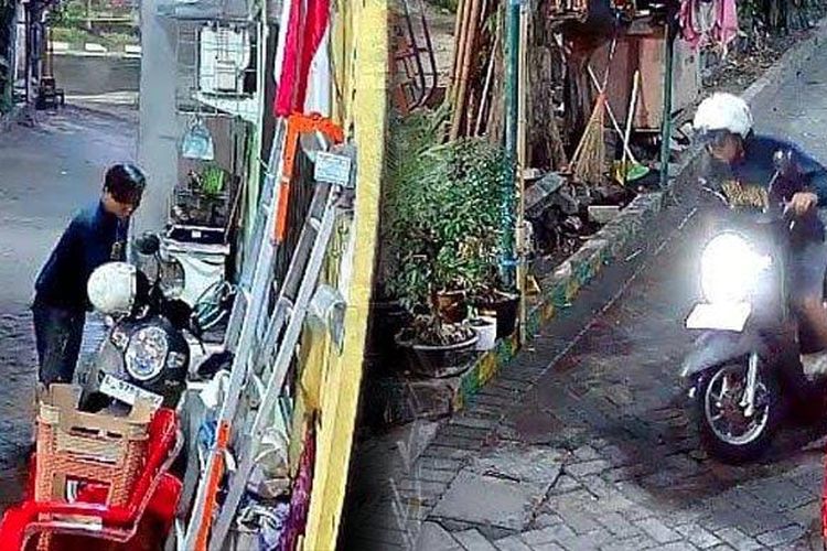 Maling terekam CCTV gagal bawa kabur Honda Scoopy meski lubang kunci dibobol dan mesin sudah menyala, pemilik cerdas