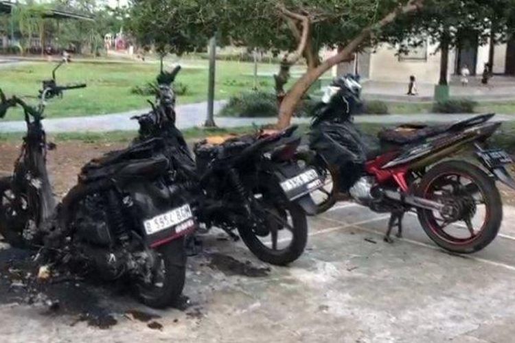 Warga dibuat heboh saat dengar suara seperti pretek-pretek, saat ditengok 4 motor terbakar hebat sampai gosong