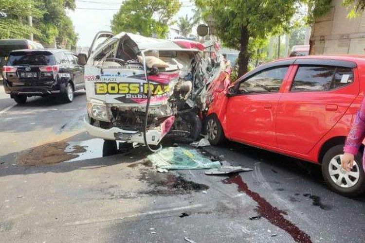 Isuzu Traga terkoyak tak berbentuk, jadi biang kecelakaan libatkan dump truck dan Toyota Agya di Tirtomartani Kalasan Sleman
