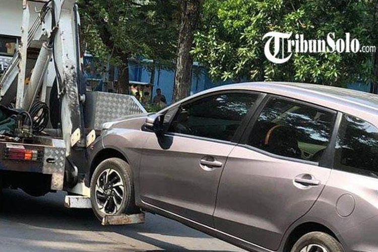 Honda Mobilio dan satu mobil lain diderek Dishub Solo, pemilik didenda Rp 300 ribu karena ganggu Piala Dunia U-17 di Stadion Manahan Solo