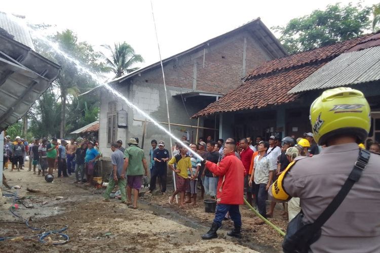 Hawa knalpot mobil biang petaka di rumah pedagang bensin eceran desa Adisara, Jatilawang, Banyumas, terbakar hebat