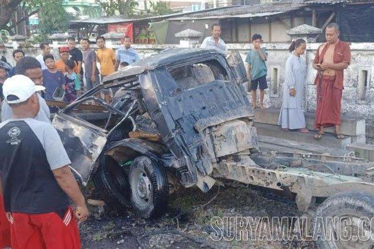 Pikap L300 dihujam kereta api saat sedang melintas di atas rel. Petaka mesin mati mendadak, sopir dan kernet lincah keluar