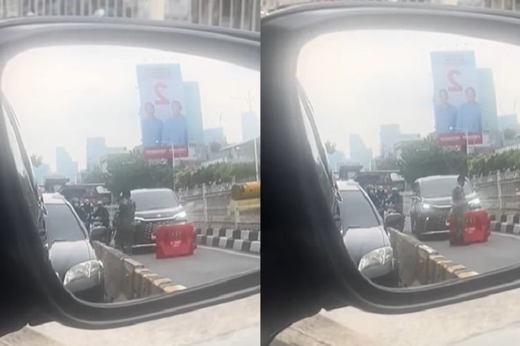 Viral pria tegas berseragam loreng berani adang Lexus LM dan pengendara motor yang nekat masuk jalur Bus Transjakarta
