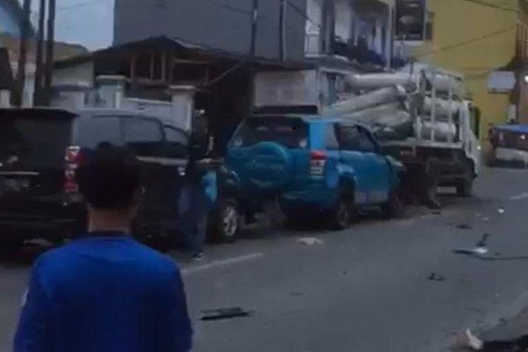 Suzuki Vitara dan pemotor kena hentakan tabung gas CNG yang meledak saat ada di tengah kemacetan. Sebabkan 2 orang berpulang