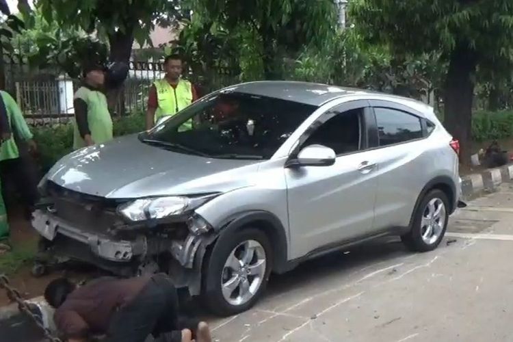 Honda HR-V terjang 6 motor petugas PJLP yang sedang istirahat. Akibatnya tiga orang dilarikan ke rumah sakit