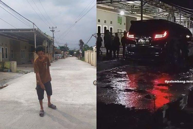Jalan cor basah di Macan Lindungan, kota Palembang diterobos Toyota Alphard, sopir marah-marah ke warga