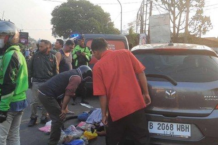 Nasib pilu penjual kue, meregang nyawa saat menyebrang jalan usai dihantam Honda Brio Satya yang baru keluar dari dealer