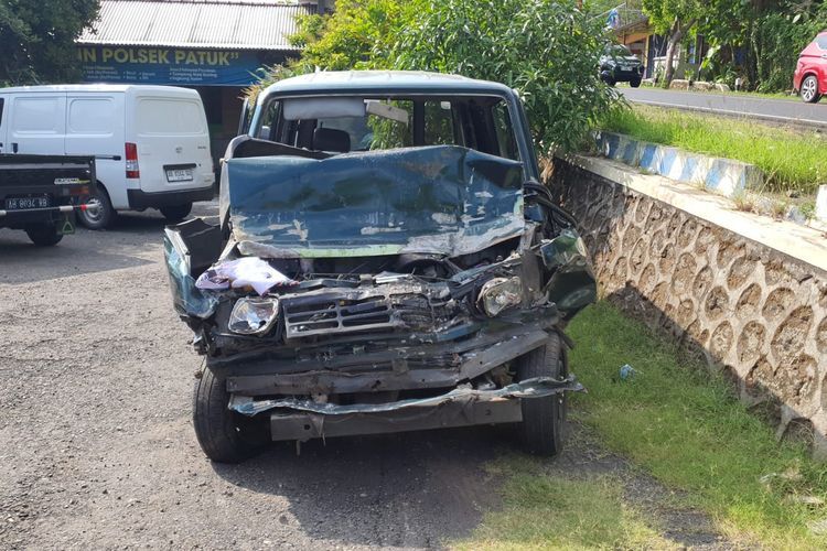 Toyota Kijang Super hancur lebur, bodi cacat melengkung sana-sini hingga kap mesin terlipat di Patuk, Gunungkidul musuh bus Pariwisata