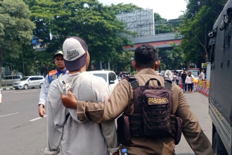 Satpol PP meringkus dan menghukum 10 juru parkir liar Kebun Binatang Surabaya dengan merawat ODGJ karena minta bayaran parkir mobil Rp 50 ribu