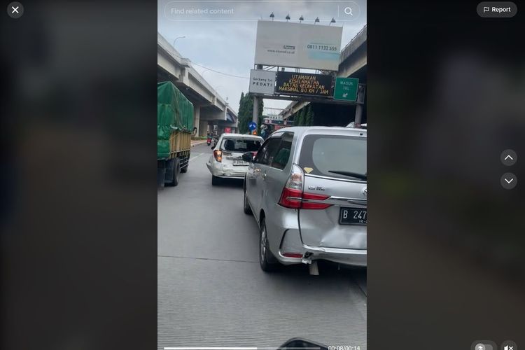 Daihatsu Xenia dan Toyota Calya ringsek saling kejar-kejaran di dekat gerbang tol Pedati arah Cawang
